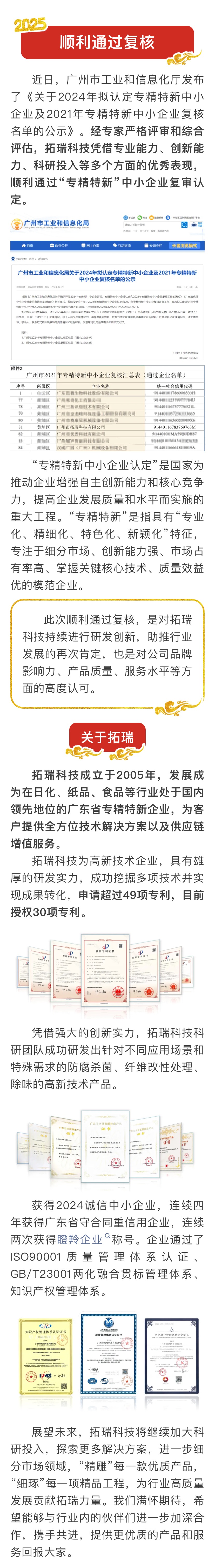 喜報|拓瑞科技順利通過“廣東省專精特新中小企業(yè)”復核評定